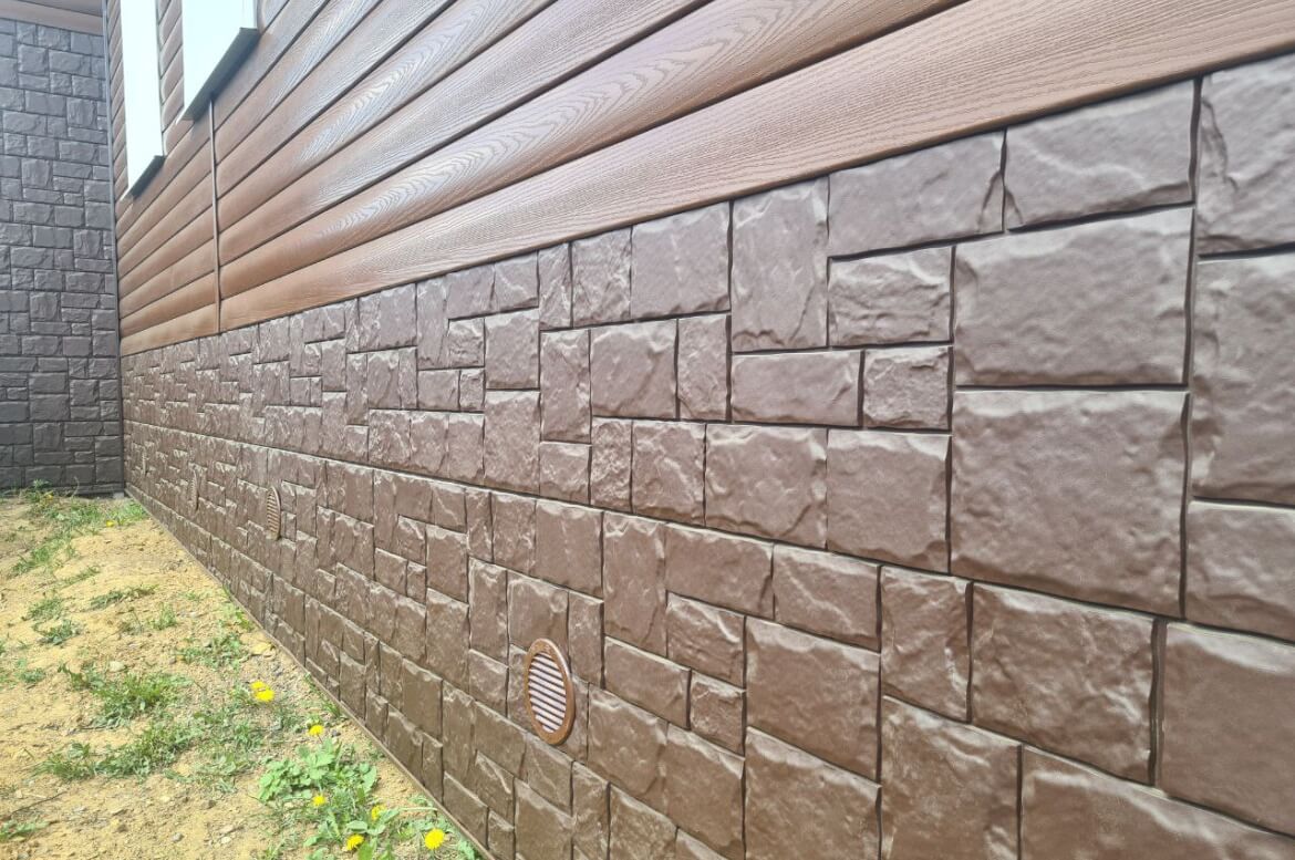 Цоколь- фасадные панели «Крупный камень» цвет Коричневый.