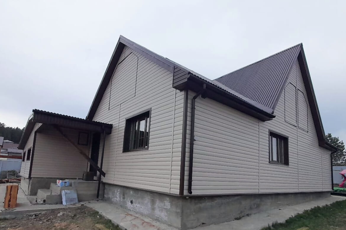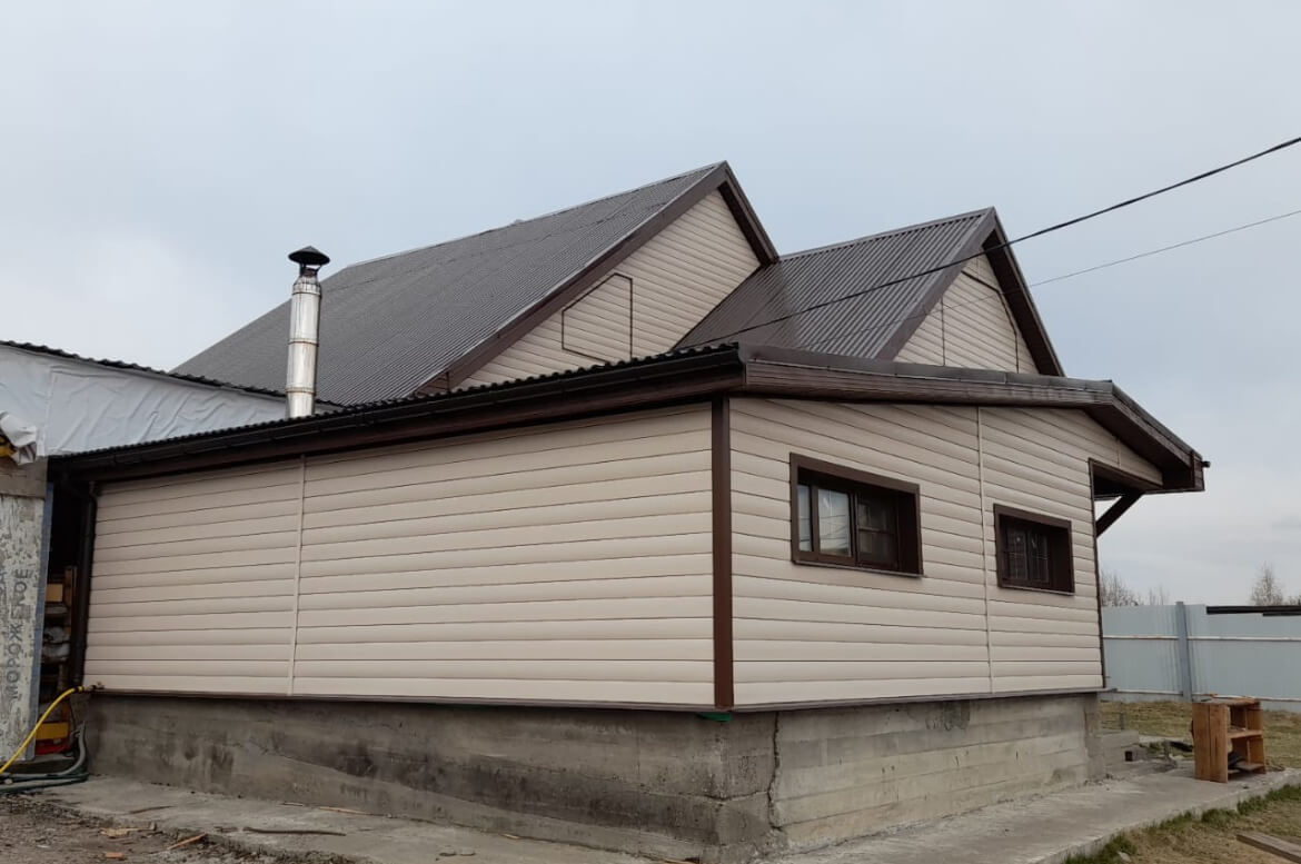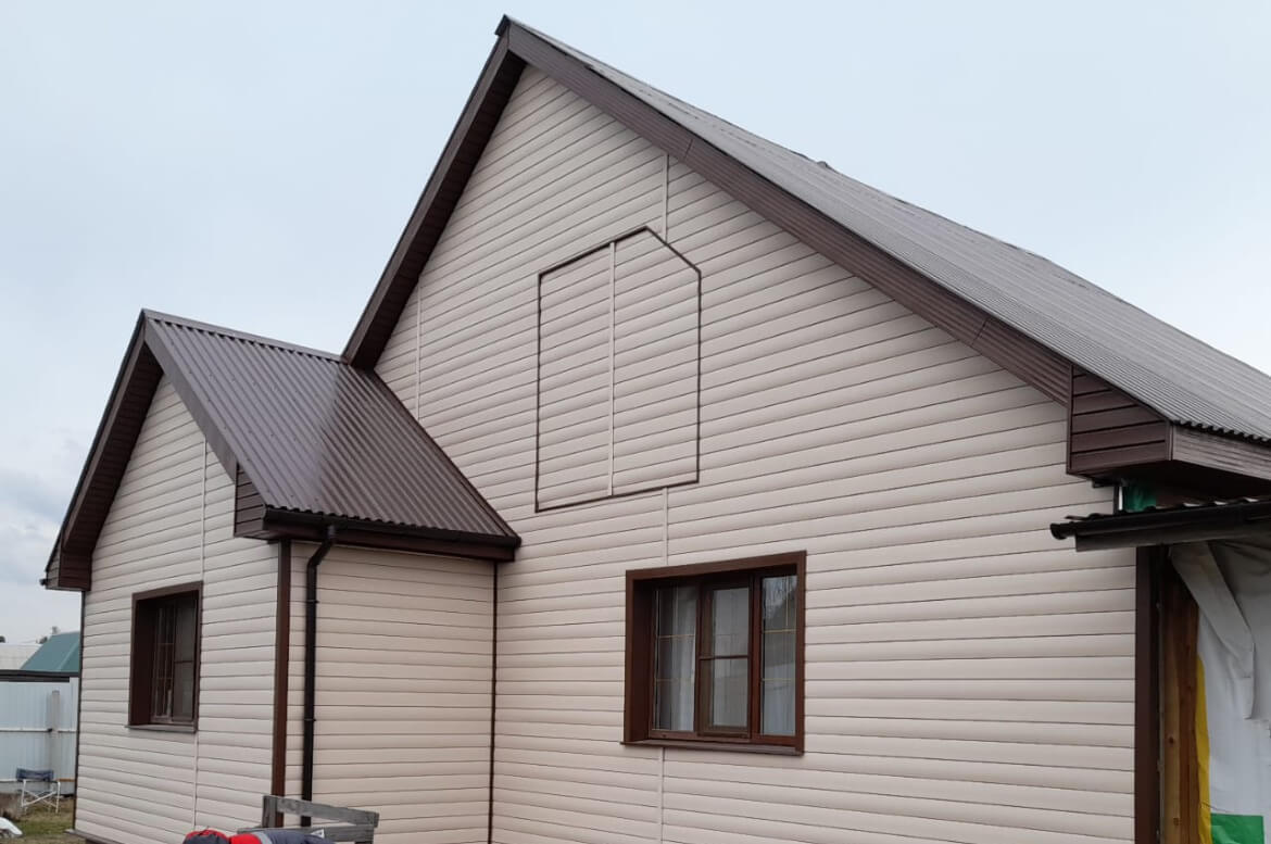 Хотите качественный сайдинг «под бревно» с текстурой дерева. «Blockhouse» от FINEBER отлично подойдет. Однотонный сайдинг с глянцевой поверхностью с тиснением, имитирующим вековые кольца древесины. На фасаде выглядит очень эффектно. Особенно в сочетании с акриловой отделкой окон, углов и карнизов цвета Могано.