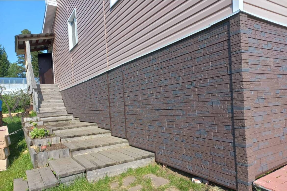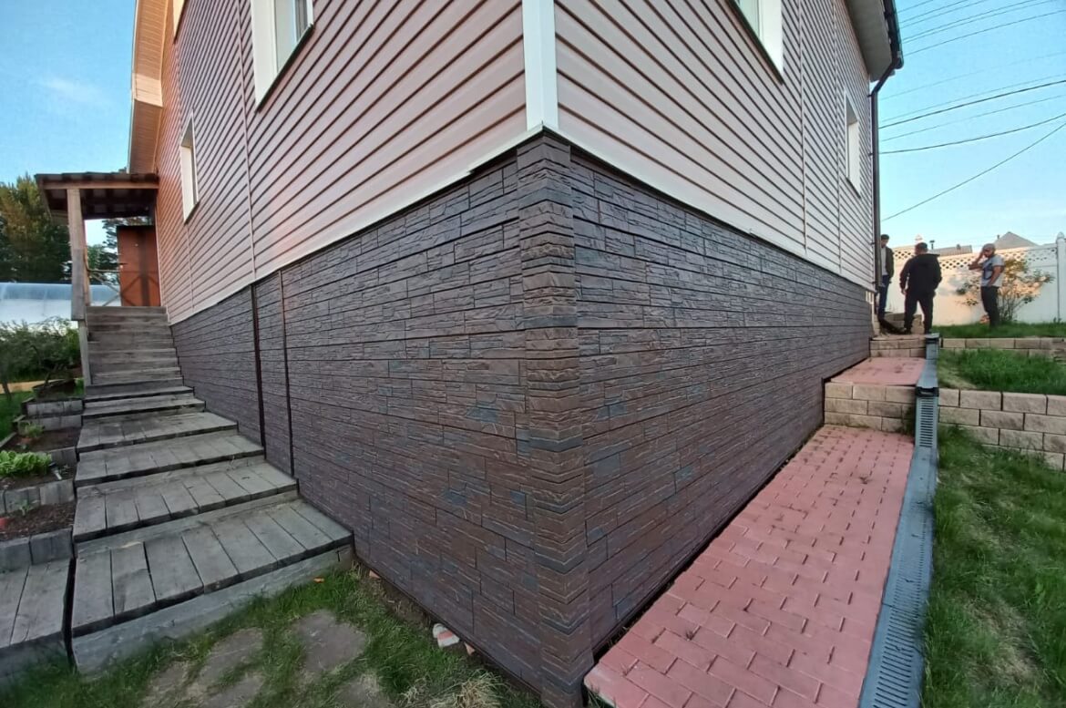 Цоколь — фасадные панели GRAND LINE серия Элит, коллекция «Сланец» цвет Орех.
