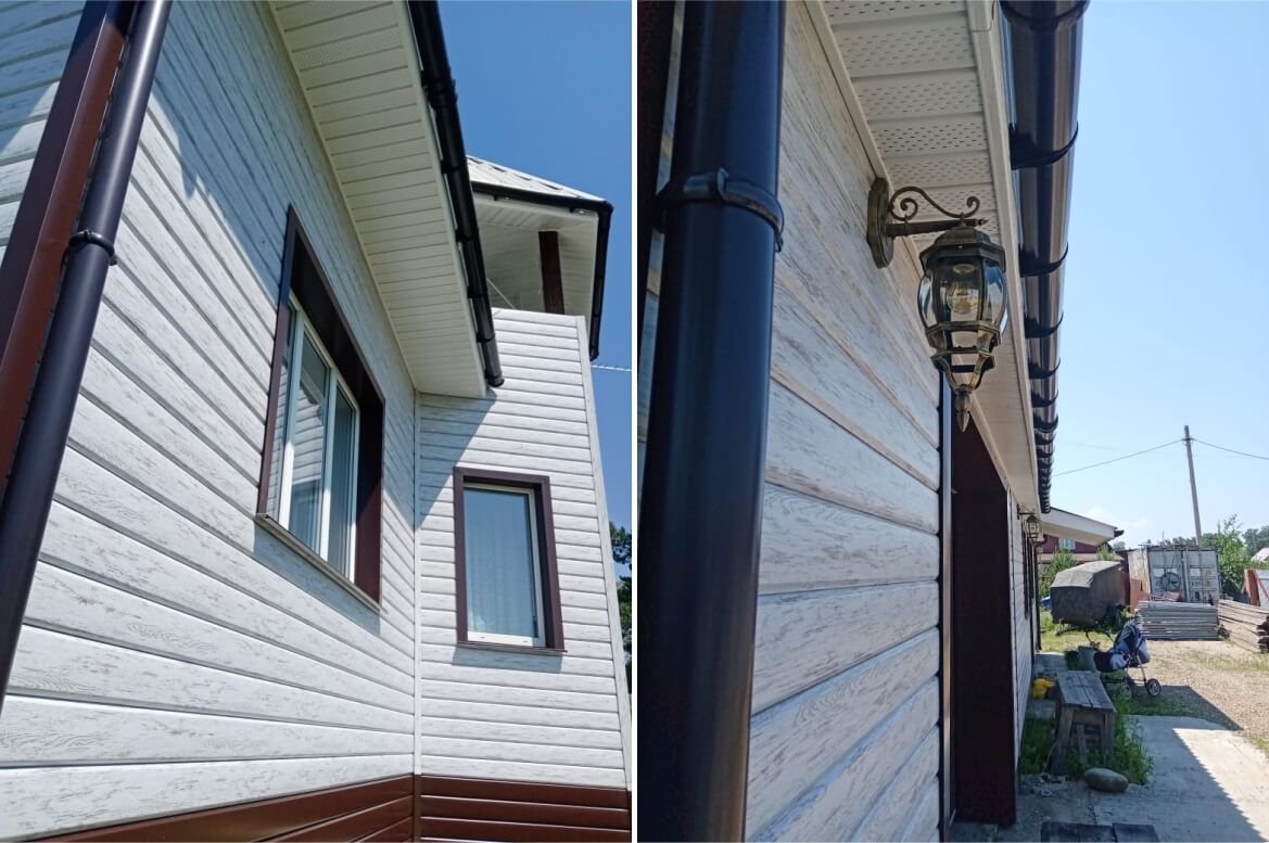 Стены — металлический сайдинг «Lбрус» цвет Белёный дуб.