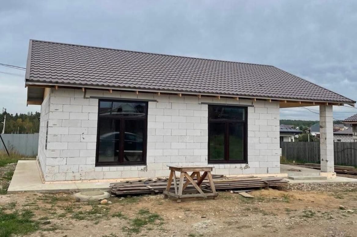 Цоколь, углы — фасадные панели FINEBER «Доломит», цвет Темно-коричневый.