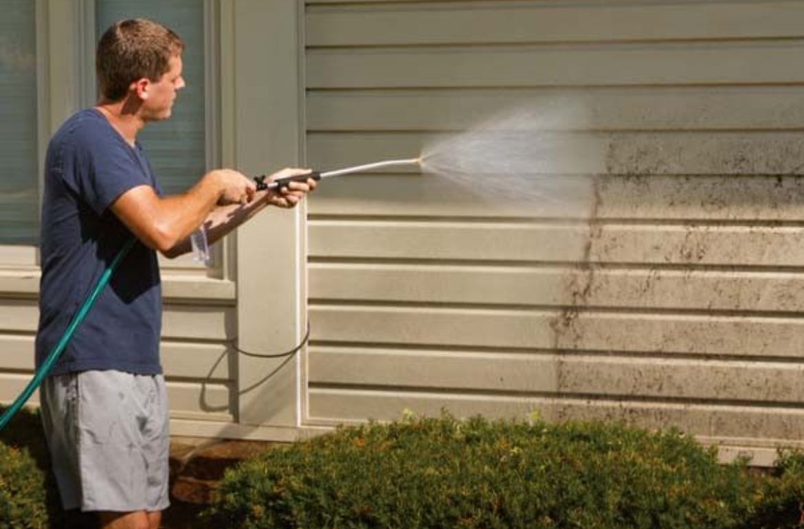 Для удаления загрязнений с его поверхности можно использовать обычный садовый поливочный шланг. Струя воды не должна быть слишком сильной, так как она может попасть под сайдинг и спровоцировать развитие коррозии или плесени на обрешетке. Следите за тем, чтобы струя воды была направлена сверху вниз. Для того чтобы загрязнения более эффективно удалялись с поверхности сайдинга, в воду можно добавить средство для мытья посуды.