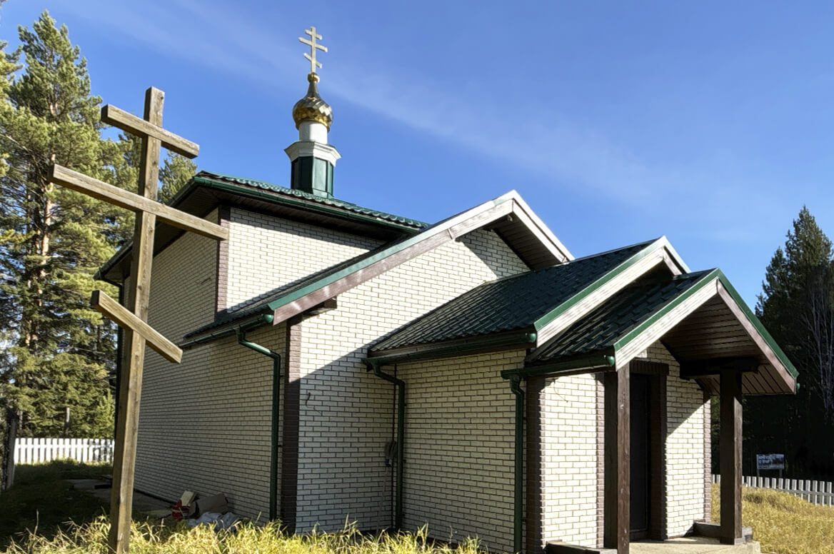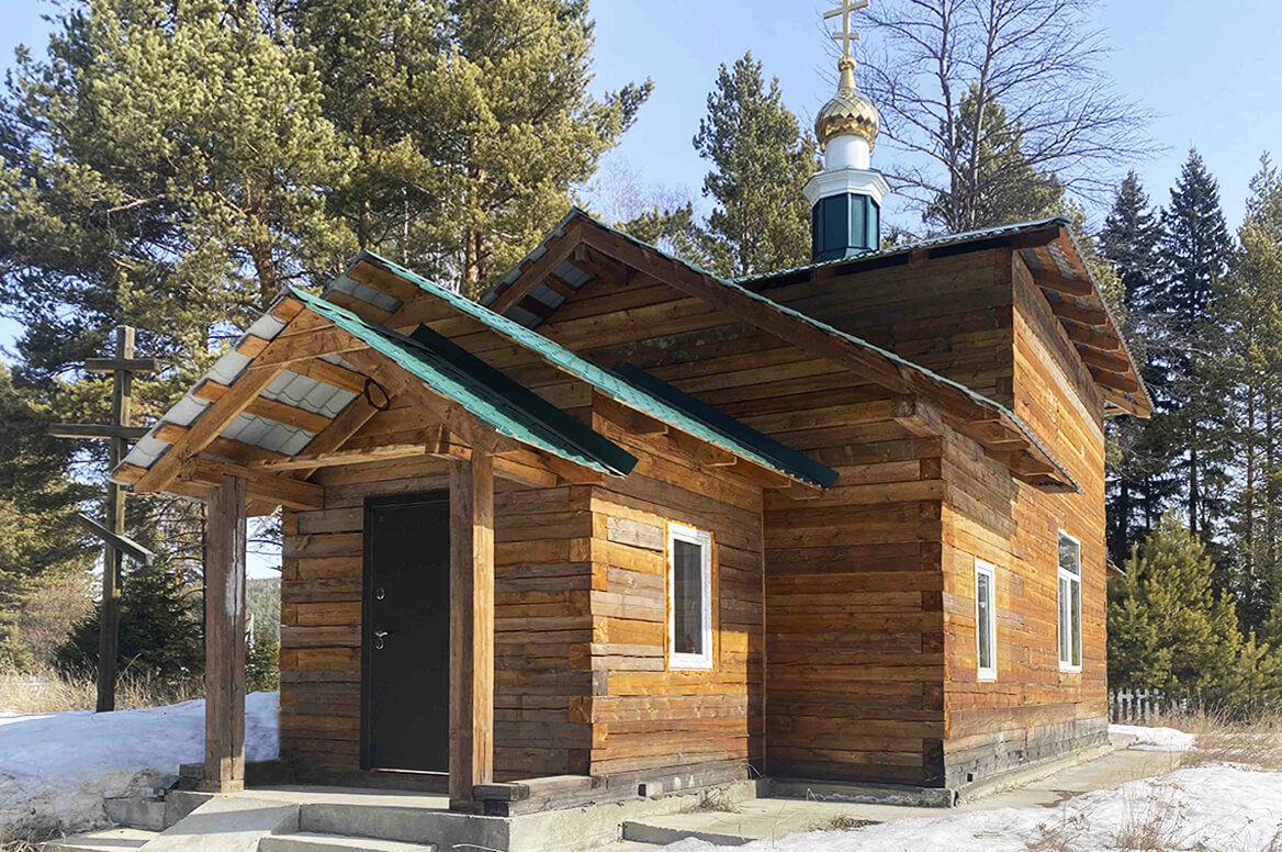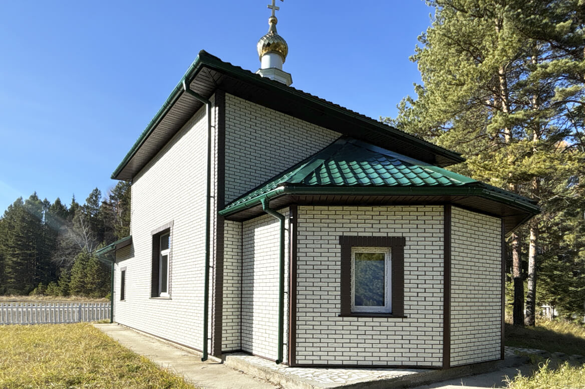 Фасадные панели пользуются спросом не только для облицовки частных домов, но и для других сооружений. Таким является и Храм Святителя Иннокентия в посёлке Горячий Ключ. Церковь построена из бруса по всем архитектурным канонам. Здесь есть большое количество скатов и навесов, есть эркер, есть вальмовая кровля.