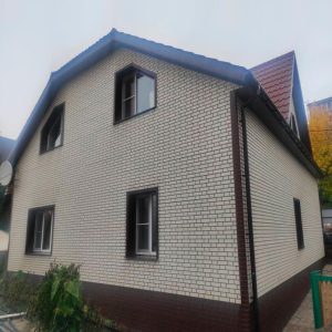 Благодаря утеплителю, толщиной 100 мм, дом будет защищён от морозов зимой, и сохранять прохладу летом. После утепления толщина стен увеличилась. В таком случае, при монтаже фасада вокруг окон просто необходима околооконная планка увеличенного размера. Например коричневая ПВХ планка от FINEBER. Она служит для отделки откосов, убирает швы и неровности, скрывает края панели после обрезки. Также с её помощью обеспечивается защита от влаги и конденсата. А фасад дома приобретает завершённый и эстетически привлекательный вид.