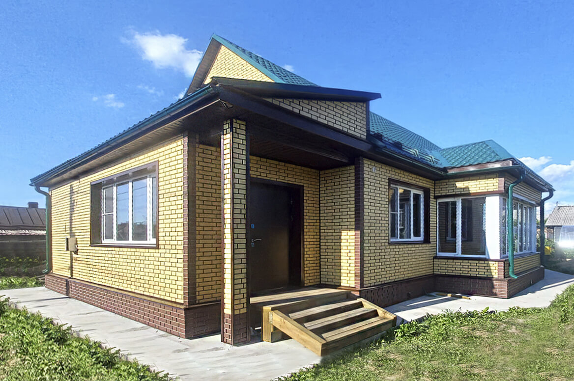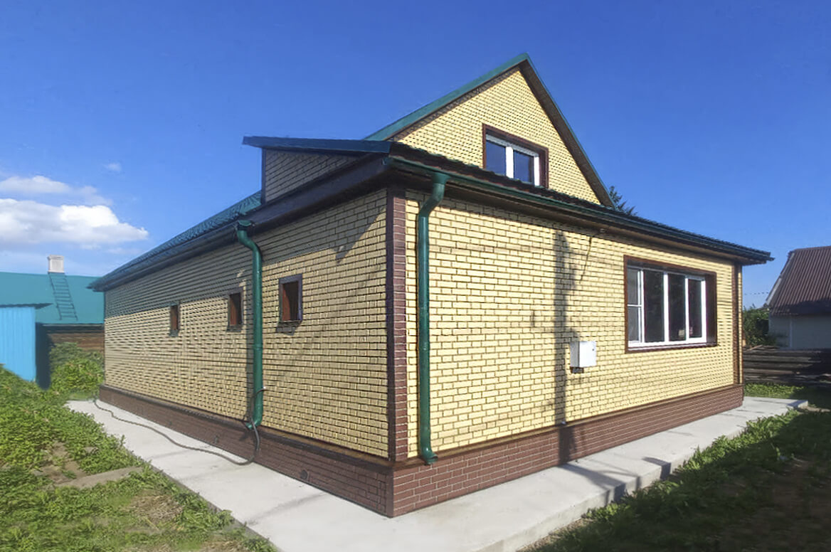 Стены — фасадные панели FINEBER «Кирпич Клинкерный», цвет Жёлтый.
