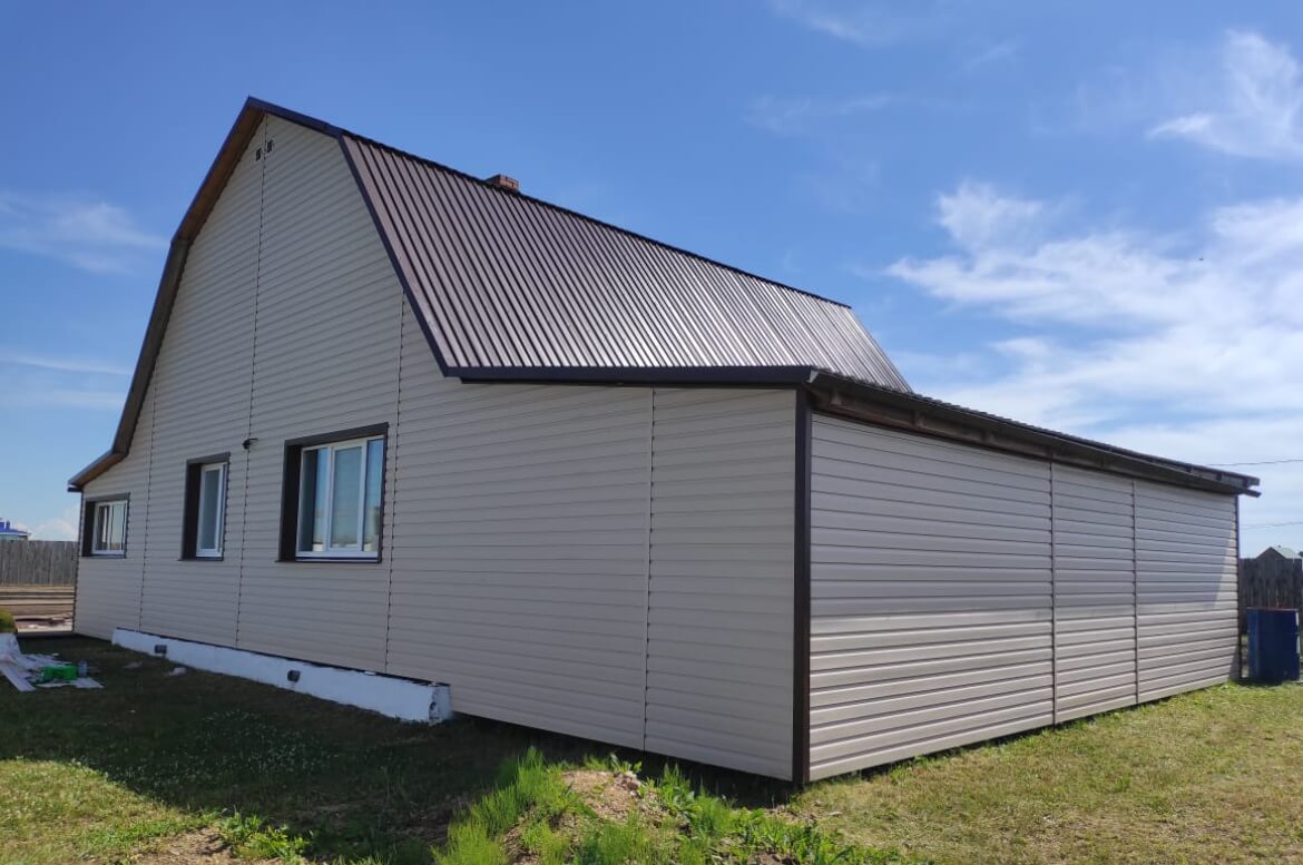 Качественный сайдинг с высокими эксплуатационными характеристиками — отличное решение для вашего фасада. Сайдинг профиля «Корабельный брус» с двумя ребрами жесткости прекрасно противостоит деформациям. Светлый цвет не выгорает на солнце и гармонично сочетается с коричневой кровлей и с любой отделкой цоколя.