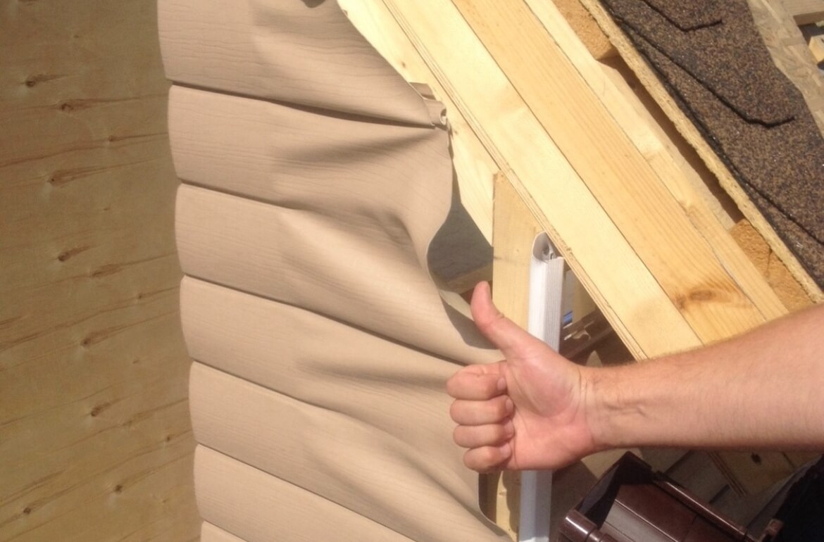 Среди наиболее распространенных ошибок неопытных мастеров, желающих выполнить монтаж сайдинга самостоятельно, можно выделить слишком сильное прибивание панелей гвоздями или чрезмерное их сжатие соседними деталями обшивки. Это приводит к деформации материала, которую называют «эффектом волны». Чтобы избежать подобных проблем, между шляпкой гвоздя и панелью нужно обязательно оставлять промежуток величиной 0,8-1,5 мм.