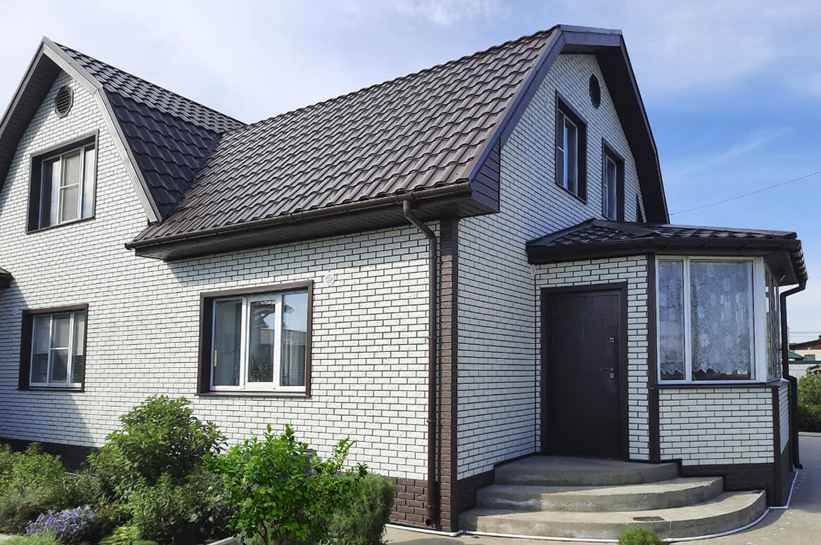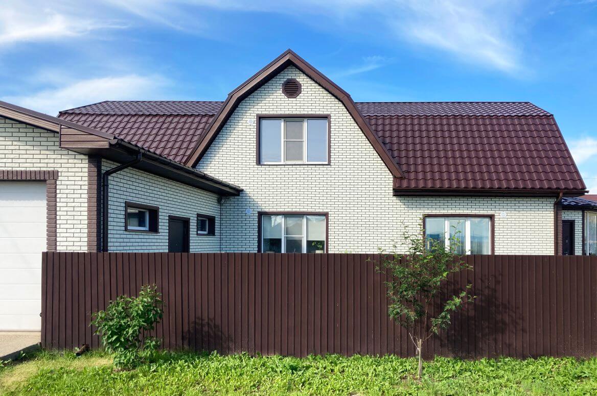 На этом доме как раз «Кирпич Баварский». У панелей особый углубленный прокрашенный шов. С его помощью и достигается эффект объема и реалистичности. А текстура на кирпичиках создает дополнительное впечатление уникальности каждого отдельного элемента. Есть несколько цветовых решений, в тон натуральных кирпичей. С белыми панелями дом очень преобразился — стал светлее, аккуратнее, локаничнее.
