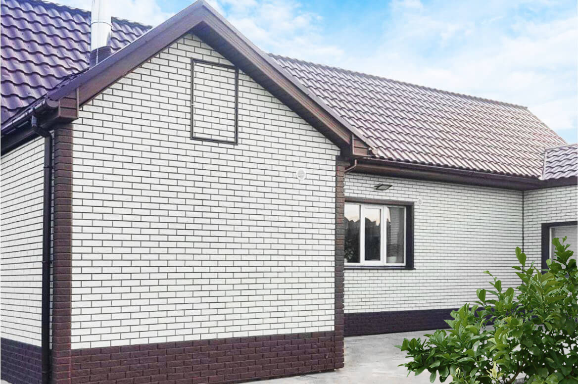 Стены — фасадные панели FINEBER «Кирпич Баварский», цвет Белый.