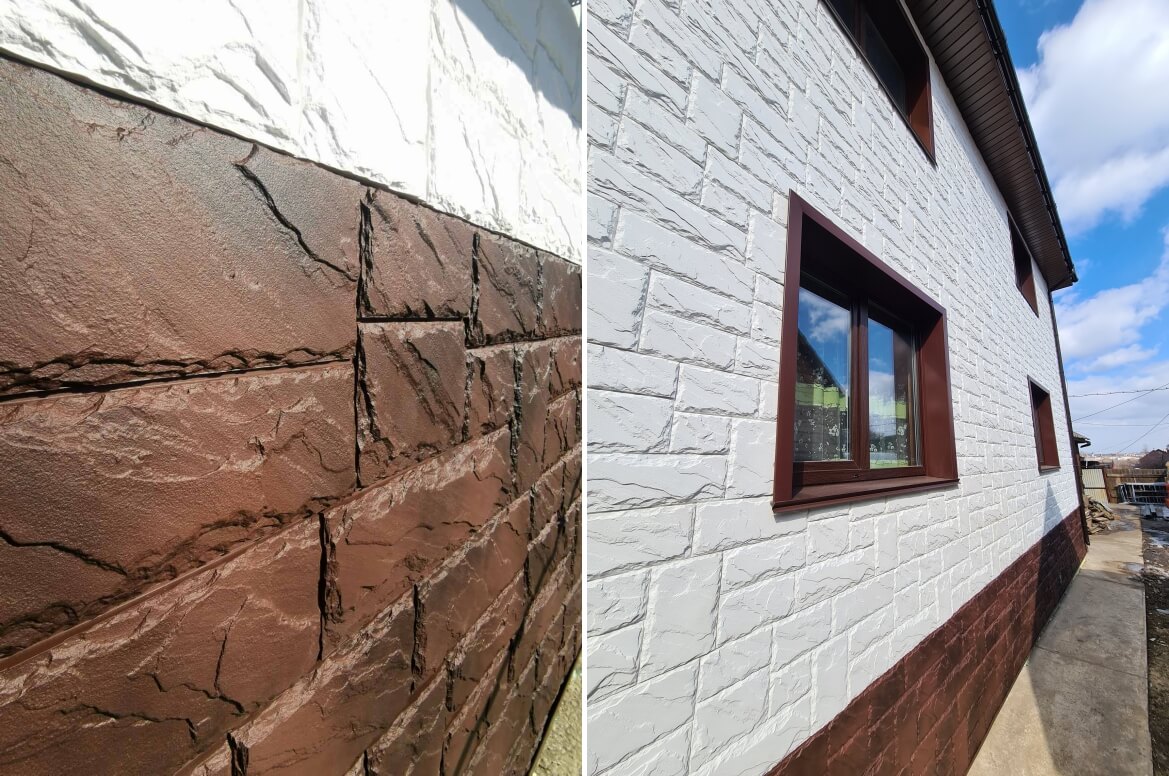 Цоколь, углы — фасадные панели FINEBER «Камень Крупный» Коричневый.