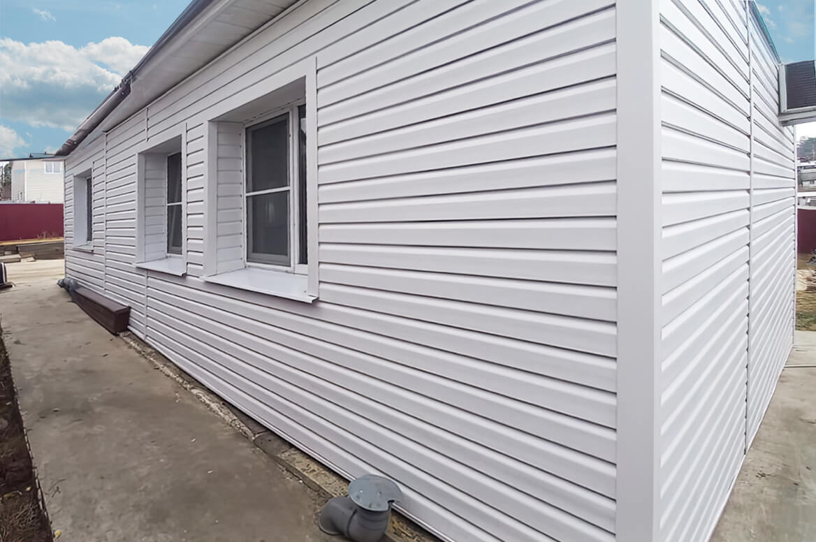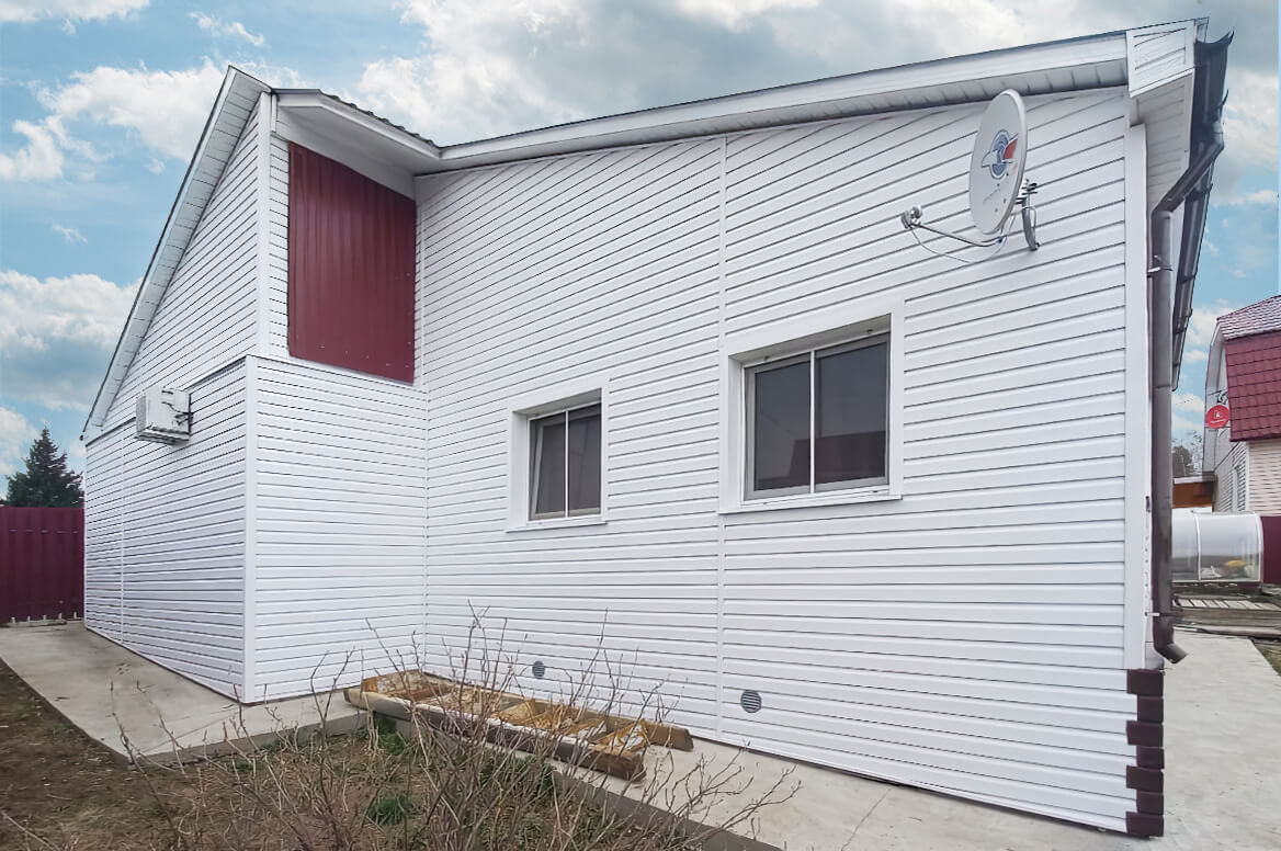 Это универсальное решение по многим параметрам. Белый цвет никогда не выгорит, он останется неизменным весь срок службы. Белый сайдинг отражает солнечные лучи, поэтому и нагревается минимально, он самый экономичный. А так же белый цвет визуально делает дом светлее просторнее и чище. Цвет универсальный и подойдёт для дома в любом архитектурном стиле. При должном уходе белый сайдинг будет радовать своего хозяина очень долго! Именно такой сайдинг выбрал хозяин дома.