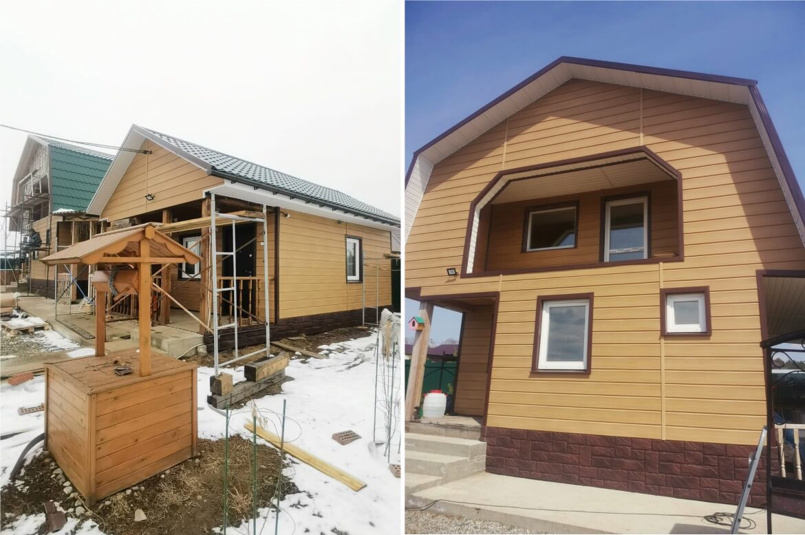 Стены — сайдинг GRAND LINE «Natural-брус» цвет Клён.