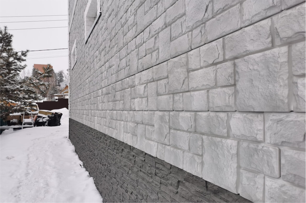Стены — ПВХ фасадные панели GRAND LINE «Екатерининский камень» Серебро.