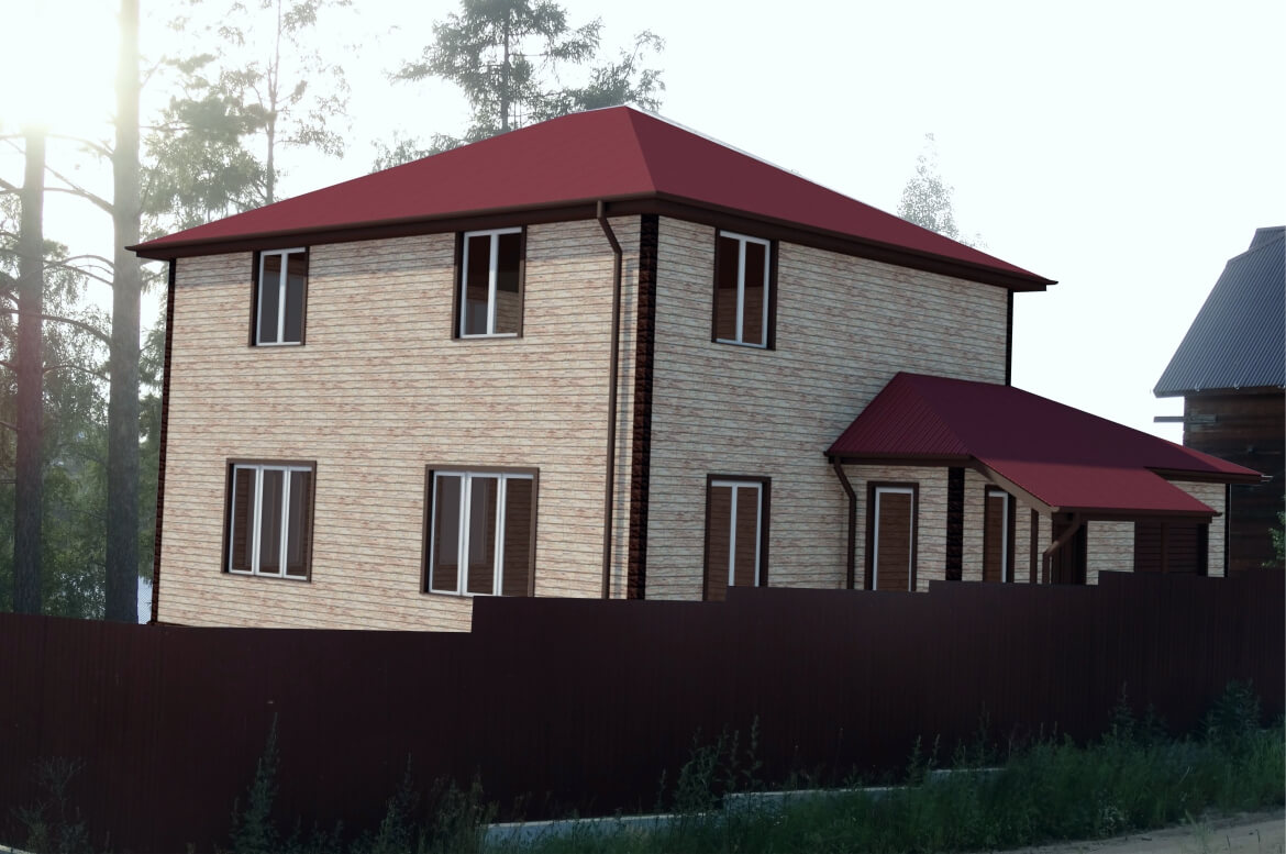 Выбрать подходящий оттенок помогла визуализация фасада, выполненная архитектором нашей компании.