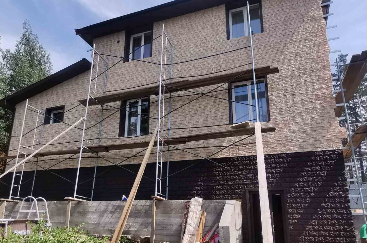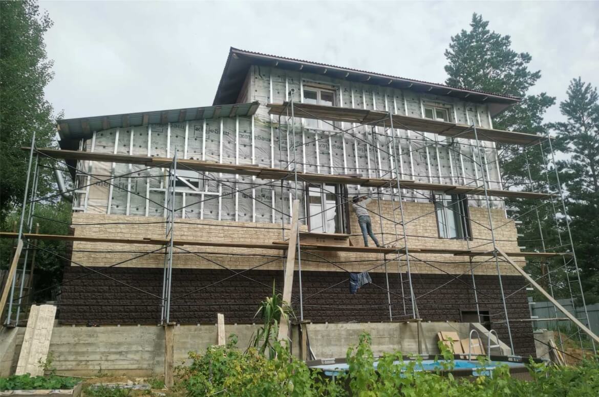 С желаемой фактурой фасада заказчик определился сразу, понравились фасадные панели «Скала» от GRAND LINE.