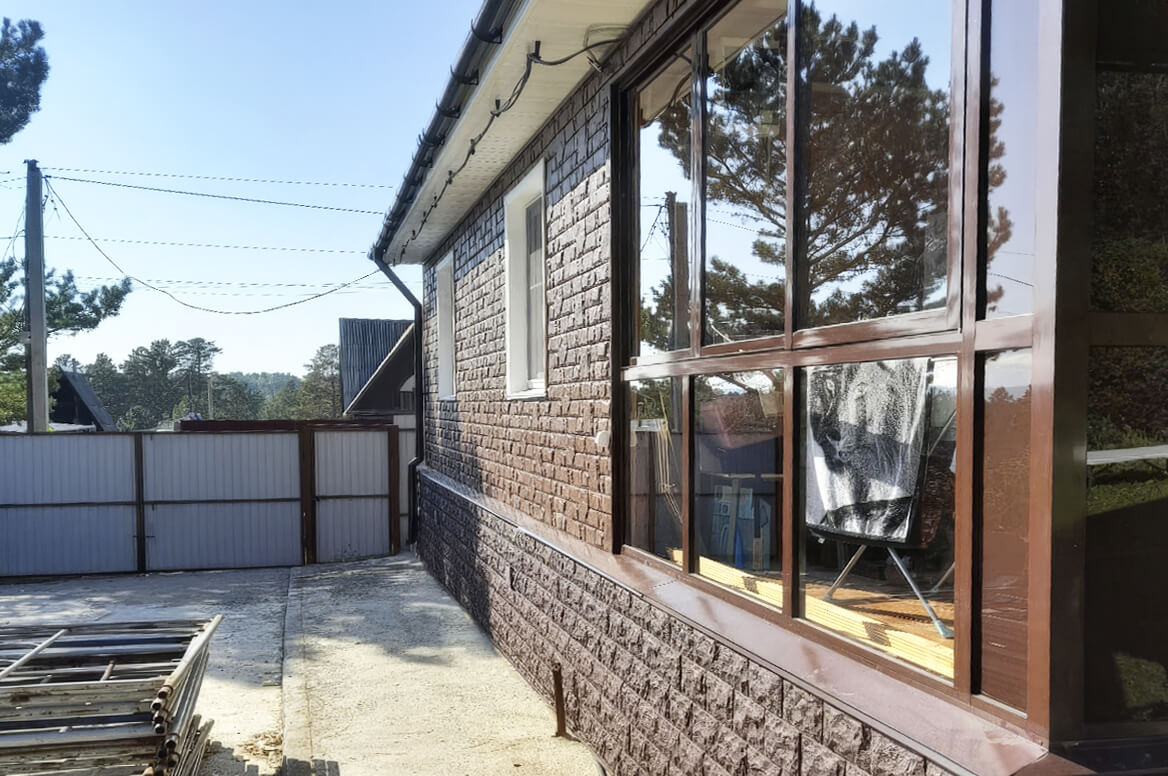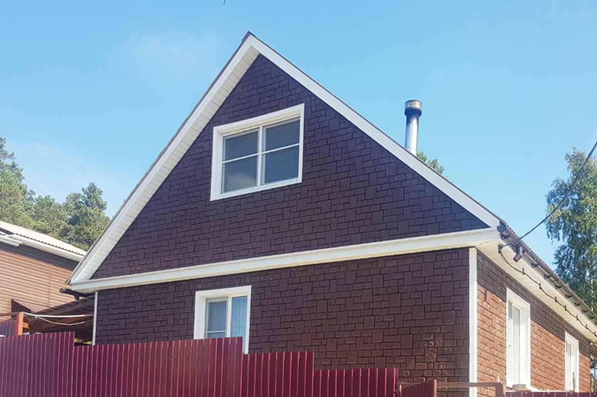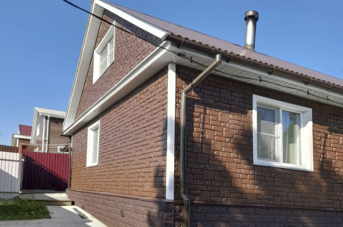 Перед нами классическое исполнение «Екатерининского камня» в коричневом цвете. Преимущество тёмных цветов панелей «ЯФасад» состоит в том, что в них добавлен не просто цветовой пигмент, а специальный акриловый компонент. Он придает панелям повышенную долговечность и стойкость к УФ-лучам.