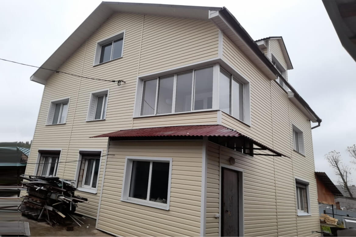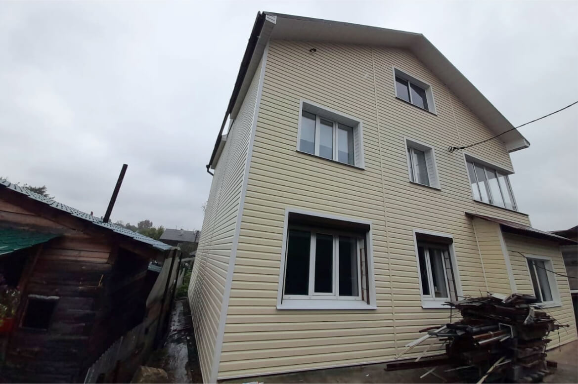 Редко встретишь такой большой дом! А уж прогреть такой дом зимой — целое дело! На первый план выходит вопрос качественного утепления стен, и, как следствие, наружной отделки. Виниловый сайдинг «Корабельный брус» от GRAND LINE — отличное решение.