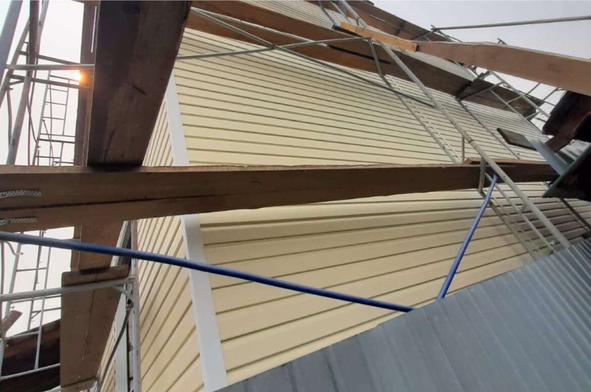 Стены — сайдинг «Корабельный брус» GRAND LINE Ванильный.
