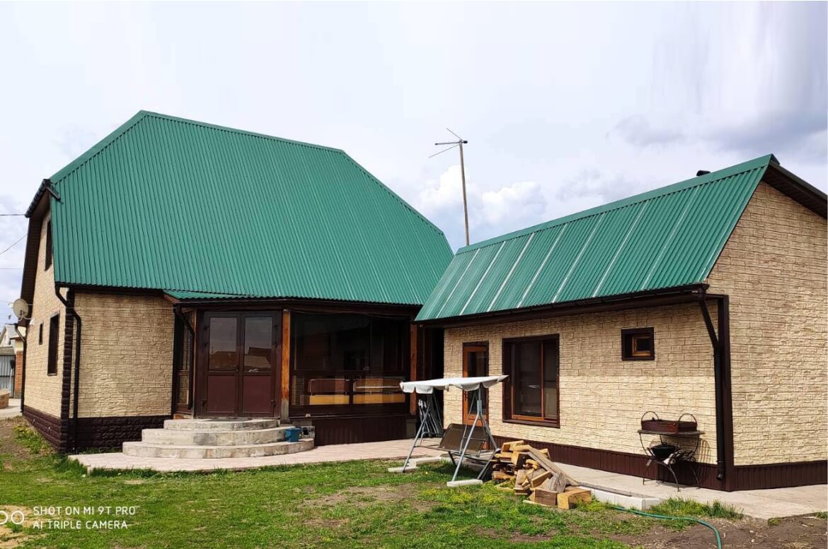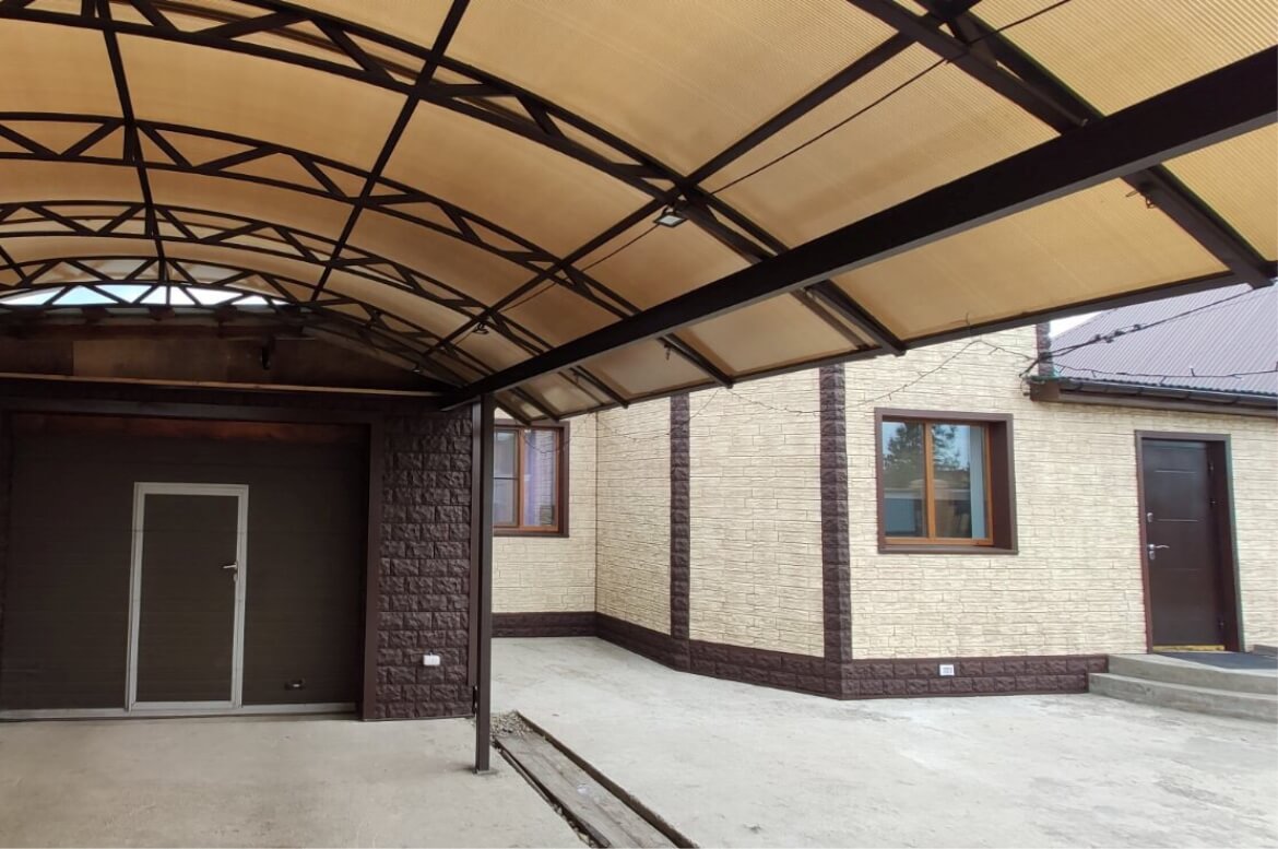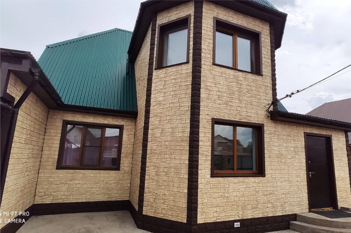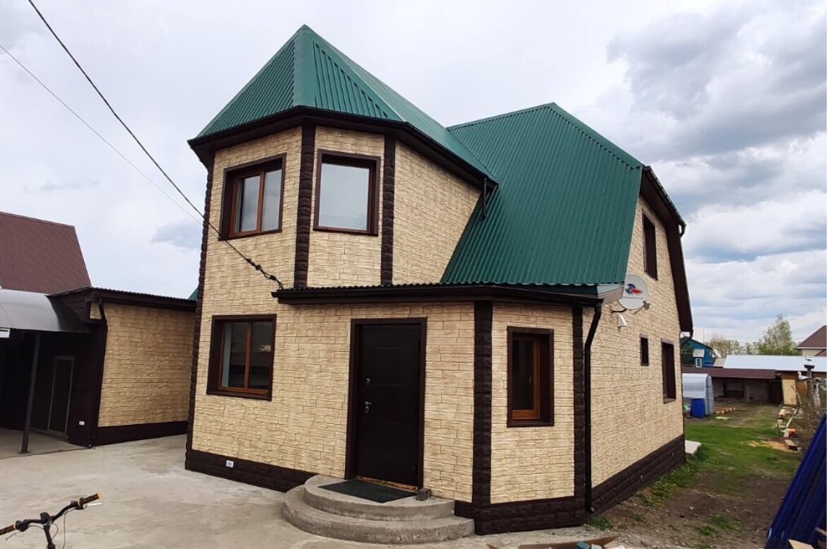 Цоколь, отделка углов — панели FINEBER «Доломит» Тёмно-коричневый.
